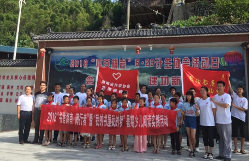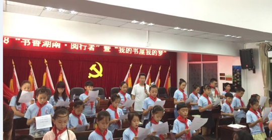新时代,新征征,新面貌,为大力推动全民阅读工作,加强农家书屋维护使用,推进农家书屋深化服务,提质增效,丰富农村中小学生文化生活,2018年7月25日省新闻出版局、省作协、市文体广新局、市作协、小溪流杂志社、红网、经视等单位在洪江区桂花园乡岩门村、横岩乡鸬鹚村的农民自家书屋现场开展了《2018年开展“书香湖南·阅行者”暨 “我的书屋•我的梦” 农村少年儿童阅读实践活动》,共有50余名学生参加,活动丰富多彩。本次活动,以农家书屋的平台,以农村少年儿童健康成长为内容,由小溪流杂志社编辑引导,每位参与活动的孩子做自我介绍,并事先准备一首古诗词,在现场朗诵,演讲专家娄成和小溪流杂志社主编黄亦鸣,将对孩子的表现进行点评和指导。活动现场省市作协阅行者志愿者向参与活动的孩子赠送文具、书刊。