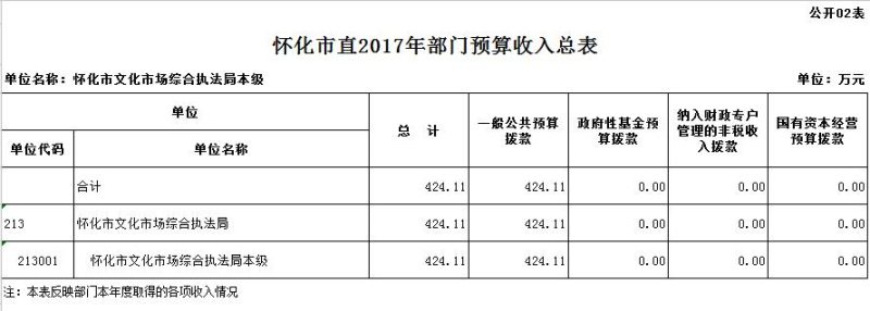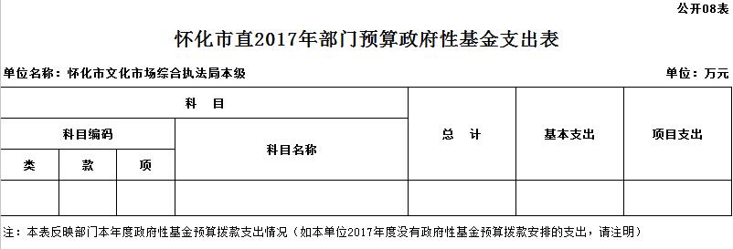 怀化市文化市场综合执法局作为一级部门预算单位,内设7个科室:办公室、人事科、政策法规科、网吧执法科、娱乐演艺执法科、版权网络执法科、广电体育执法科。
