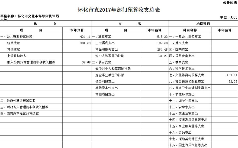 年年初预算数515.23万元,其中:工资福利支出199.48万元、商品服务支出284.48万元、对个人和家庭的补助