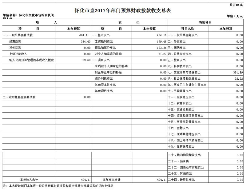 年公共财政预算经费拨款收入424.11万元,经费拨款支出具体安排情况如下: