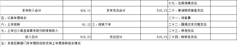 年年初预算数515.23万元,其中:一般公共预算拨款424.11万元,上年结转91.12万元。